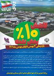 مدیرعامل شرکت شهرک‌های صنعتی سیستان و بلوچستان گفت، بر اساس این مصوبه بخش نقدی قراردادهای منعقده در بازه زمانی ۱۲ بهمن تا پایان بهمن ماه ۱۴۰۴ به میزان ۱۰ درصد کاهش یافته است.